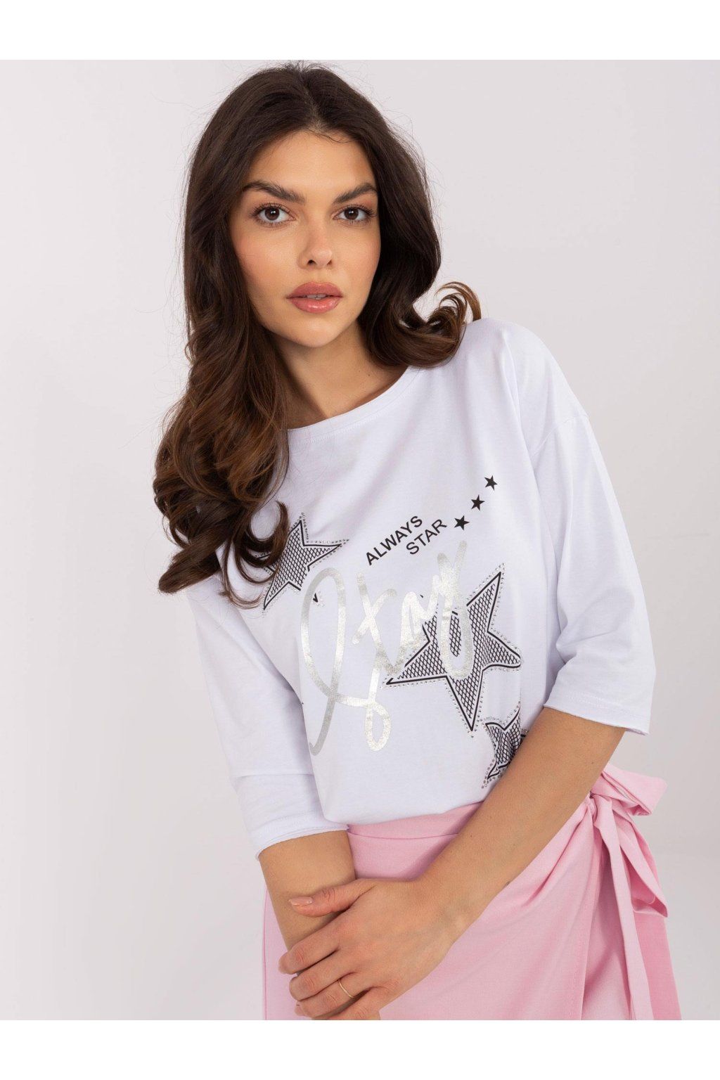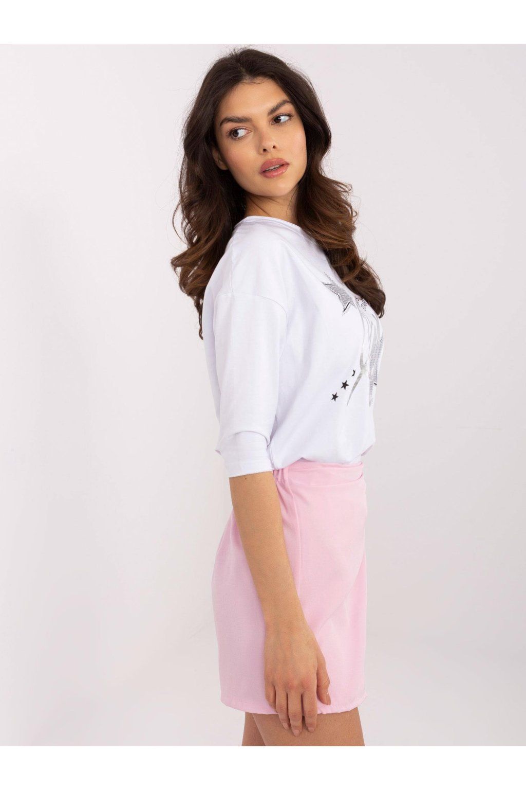 Modelka má na sobě velikost S. Míry modelky: výška 175 cm, obvod hrudníku 90 cm, pas 66 cm, boky 94 cm.