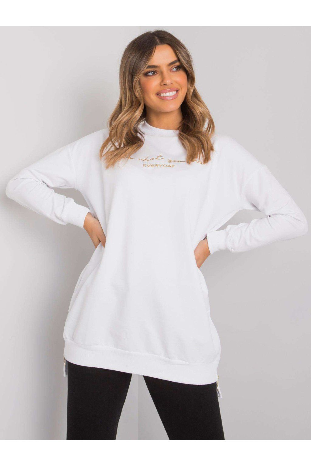 Tato bílá tunika s nápisem je perfektní volbou pro teplé letní dny! Je vyrobena z měkké bavlny a elastanu, takže se v ní budete cítit pohodlně i v horku. Díky ozdobnému nápisu dodá vašemu outfitu nádech drzosti a charakteru. Materiál je vhodné prát v pračce při 30 °C. Modelka má na sobě velikost S/M - její míry jsou: výška 173 cm, obvod hrudníku 97 cm, pas 67 cm a boky 95 cm. Tunika ve velikosti S/M měřená v plochém stavu má: od podpaží k podpaží - 58 cm, délka rukávu - 60 cm, celková délka - 78 cm.