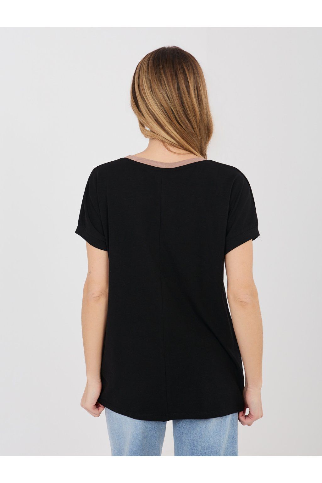 Černá halenka s flitry, která zvládne přejít z kanceláře na večerní posezení bez jediné změny. Ležérní střih, třpytivé flitry a elegance bez námahy.