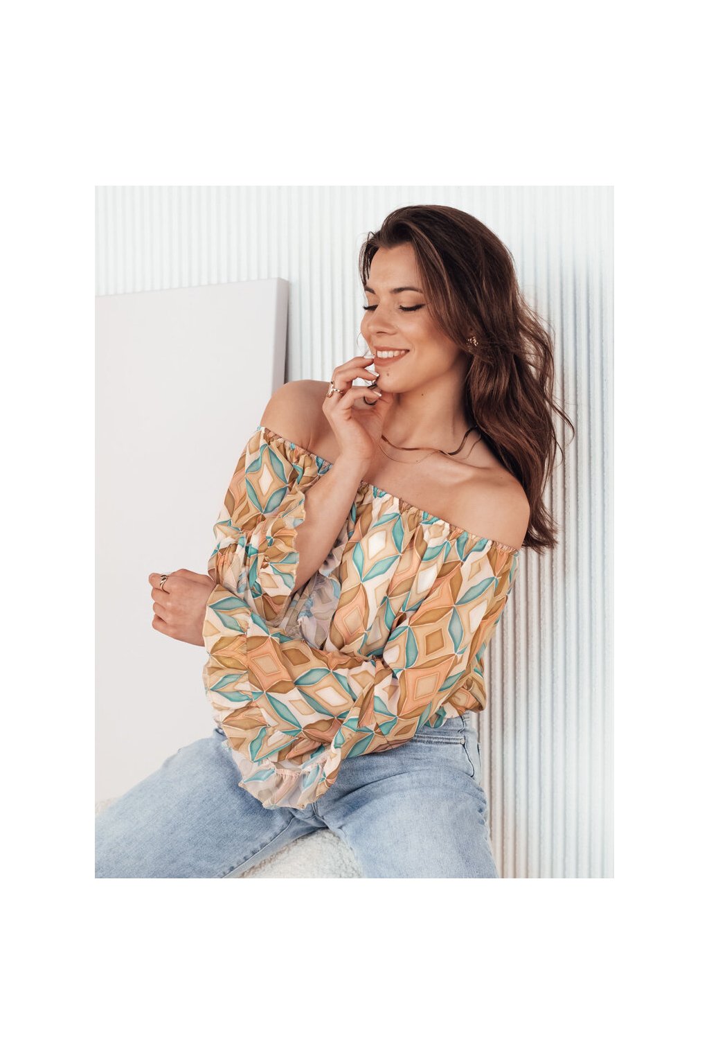 Rozevláté rukávy dodávají eleganci a lehkost, zatímco jedinečný vzor látky přitahuje pozornost a vytváří jedinečný akcent ve vašem šatníku. Tato halenka je perfektní volbou pro každou příležitost, od spontánního výletu s přáteli až po romantickou večeři.