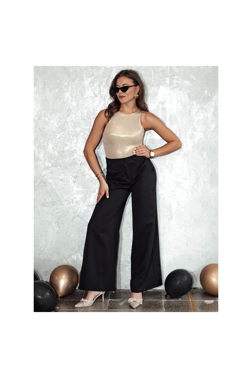Elegantní kalhoty s širokými nohavicemi, které dodají každému outfitu nádech elegance. Vyrobeny z lehké a prodyšné látky, jsou pohodlné na nošení po celý den. Jsou ideální do kanceláře i na večerní zábavu, budete se v nich cítit stylově a pohodlně. Ideální pro každou příležitost, kde se elegance setkává s moderností.
