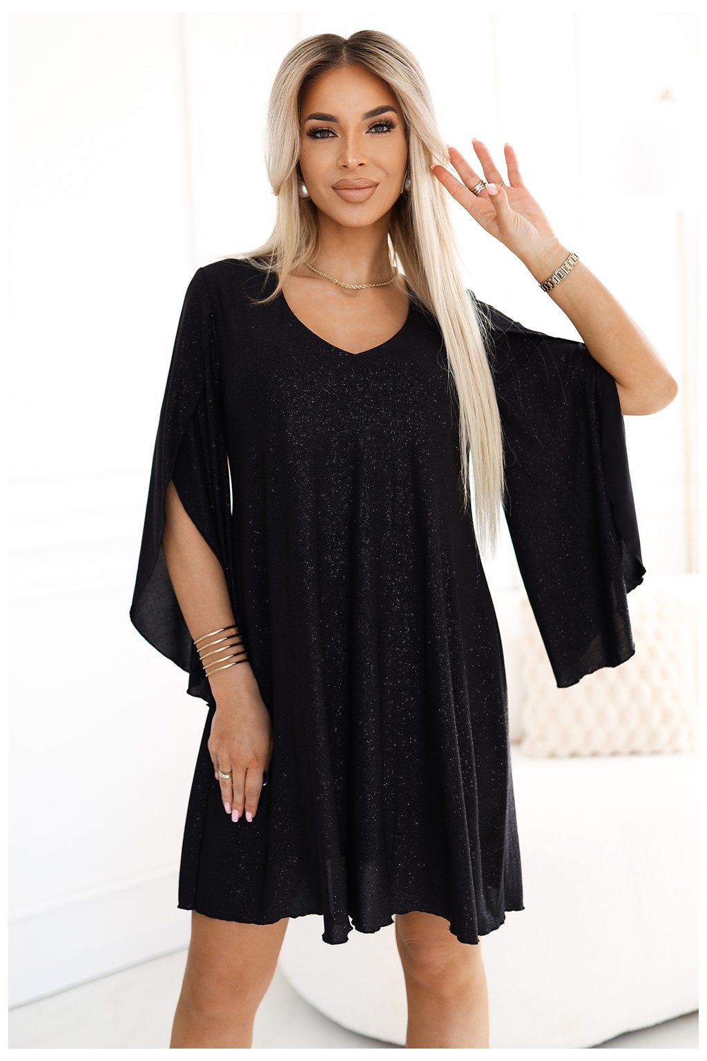 Černé šaty áčkového střihu s třpytivými a motýlími rukávy – Numoco