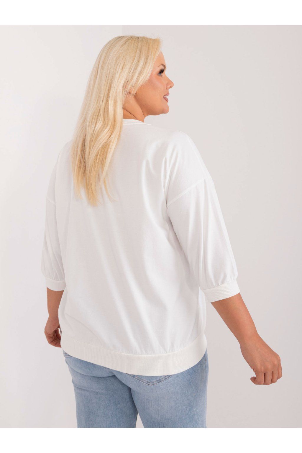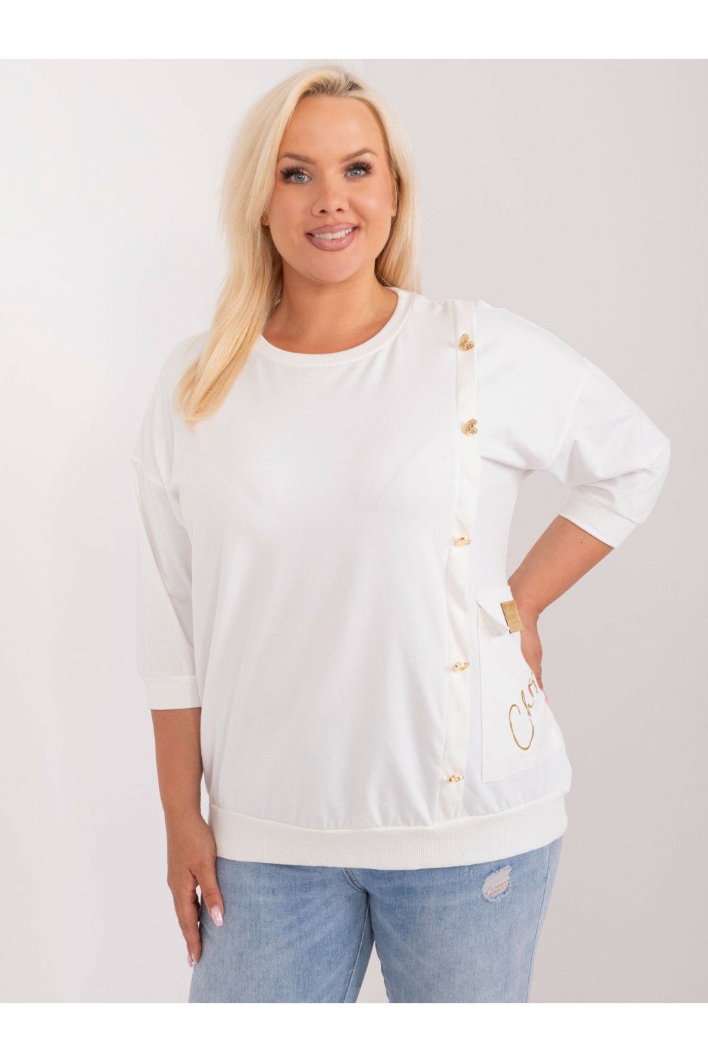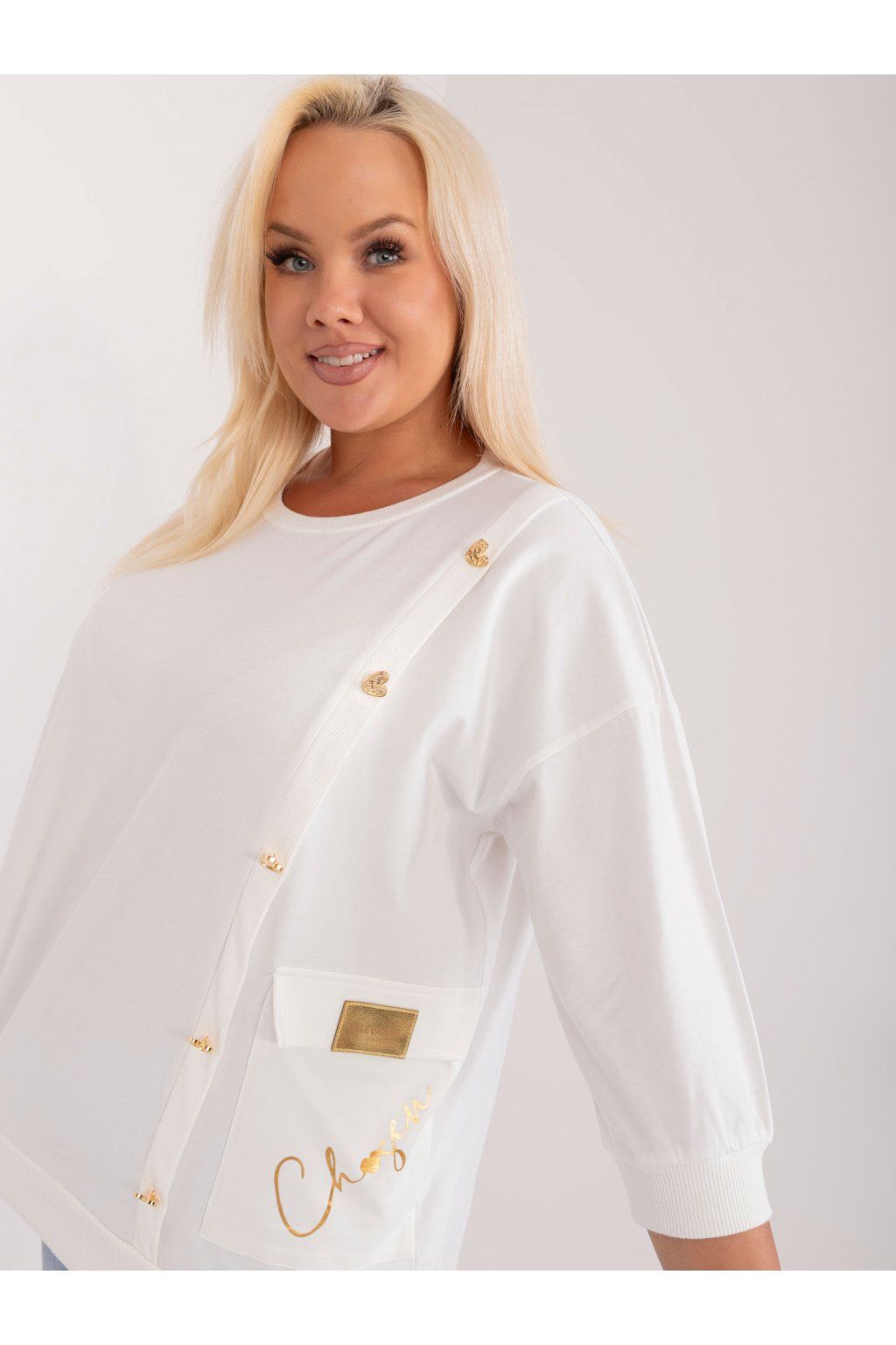 Bílá bavlněná halenka s hravou aplikací a nápisem. Kousek, který promluví za vás. Volný plus size střih pohodlně sedí a jemná bavlna se nosí příjemně celý den. PLUS SIZE
