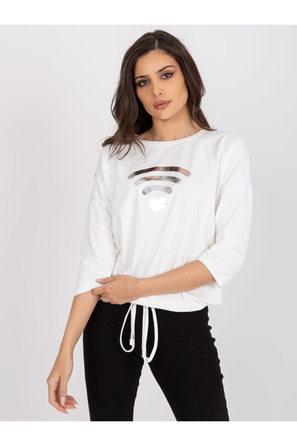 Elegantní dámská halenka od Domenica RUE PARIS v ecru barvě. Tato halenka se vyznačuje výrazným grafickým potiskem. Vyrobena ze směsi bavlny a elastanu nabízí lichotivý střih. Stahovací šňůrky v pase dodávají halence lehkost a svěží, ležérní vzhled. Složení materiálu zaručuje odolnost a měkký, příjemný dotek. Lze prát v pračce na 30 °C. Ideální do práce, do města i na každodenní nošení.