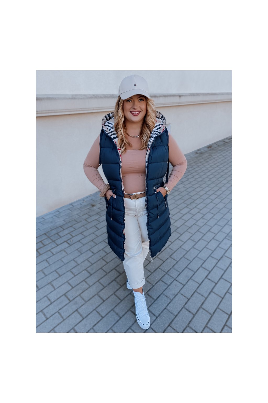 Oboustranná prošívaná vesta se stahováním tmavě modrá