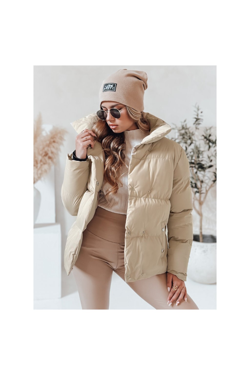 Prošívaná bunda na cvočky bez kapuce světle béžová