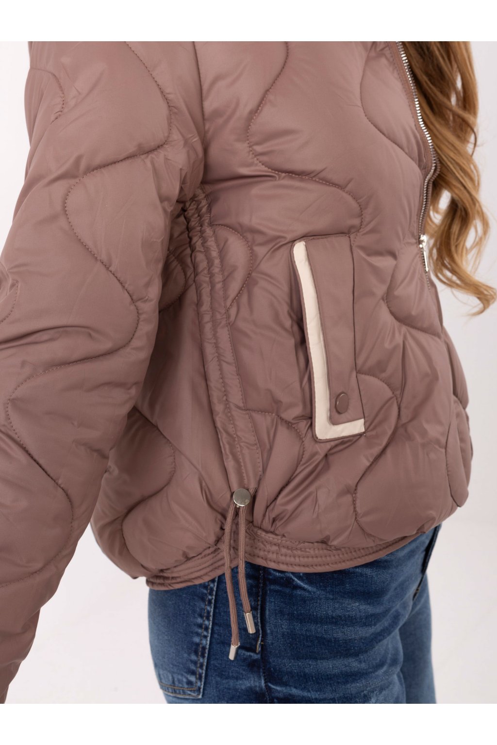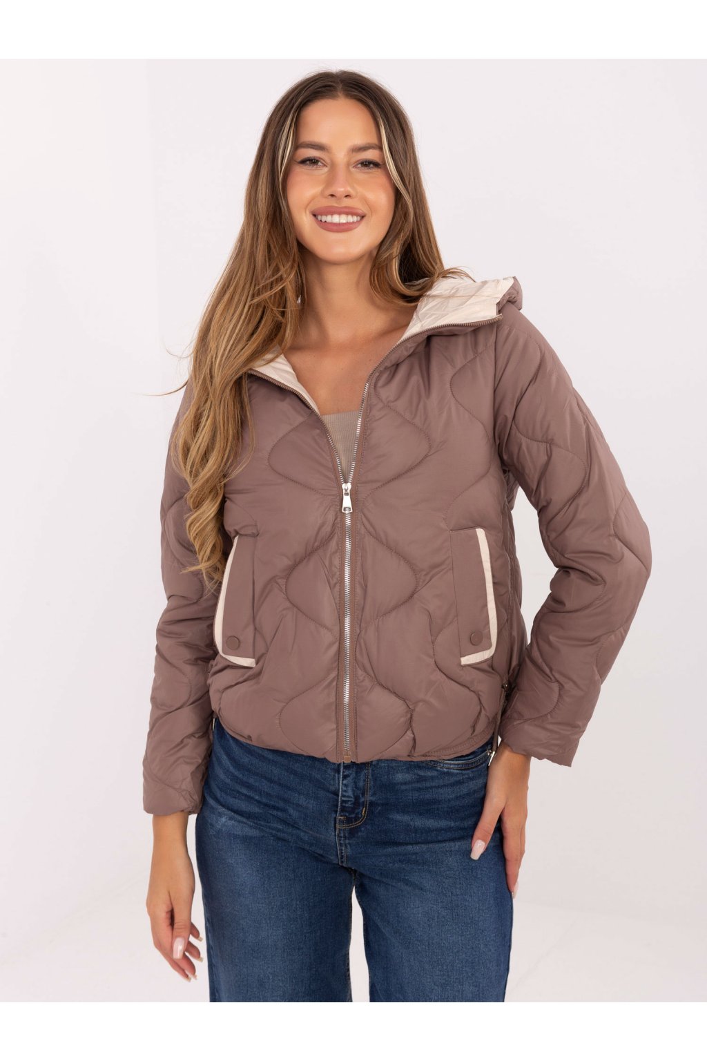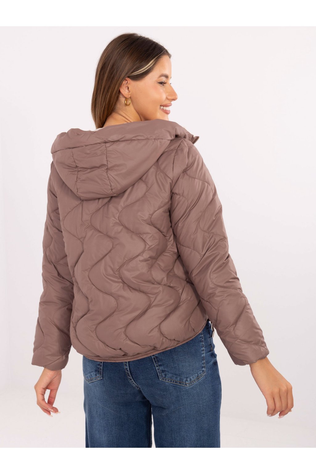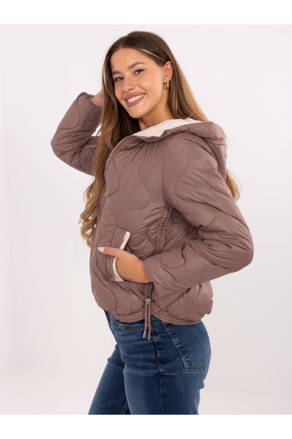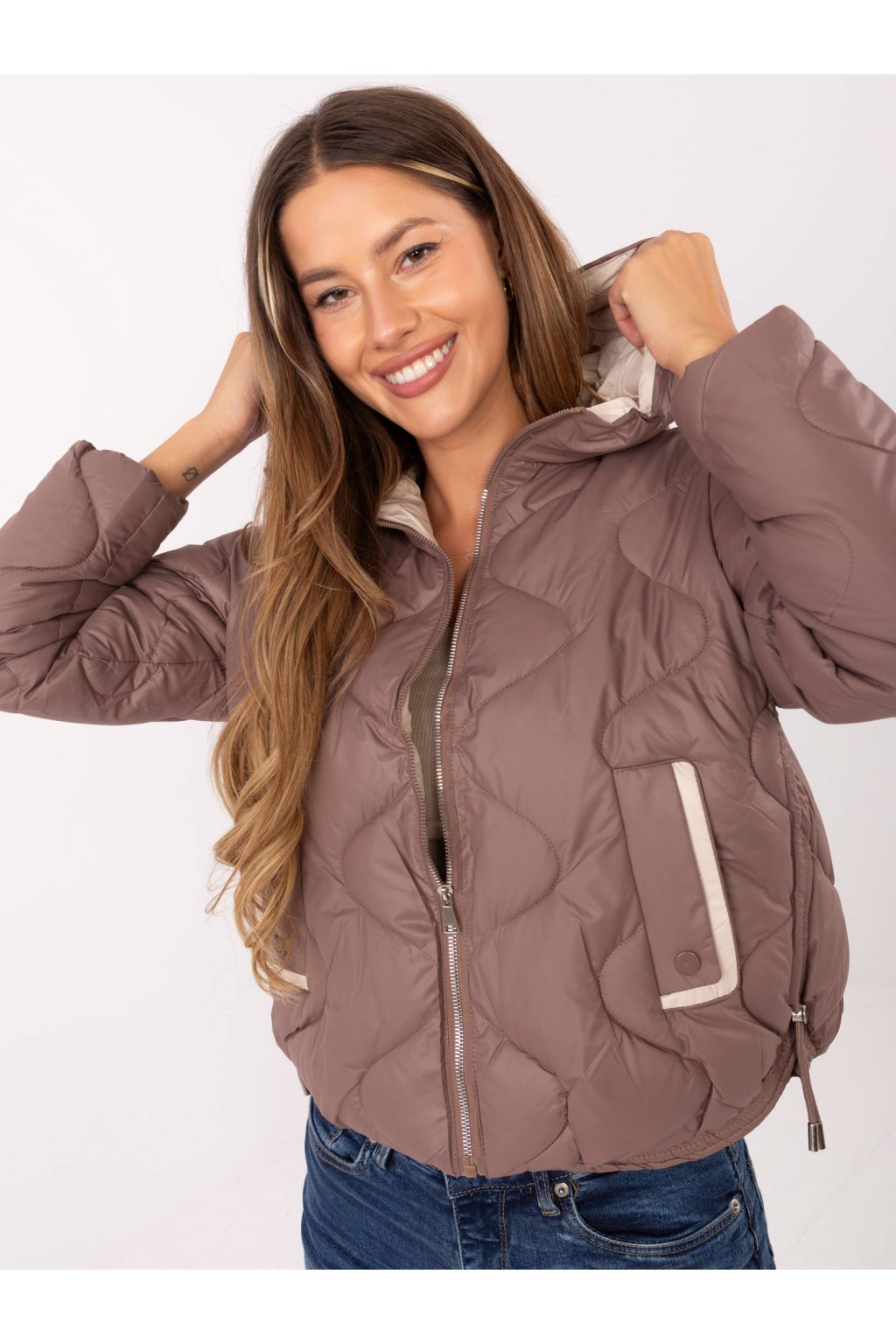 Prošívaná bunda s kapucí hnědá