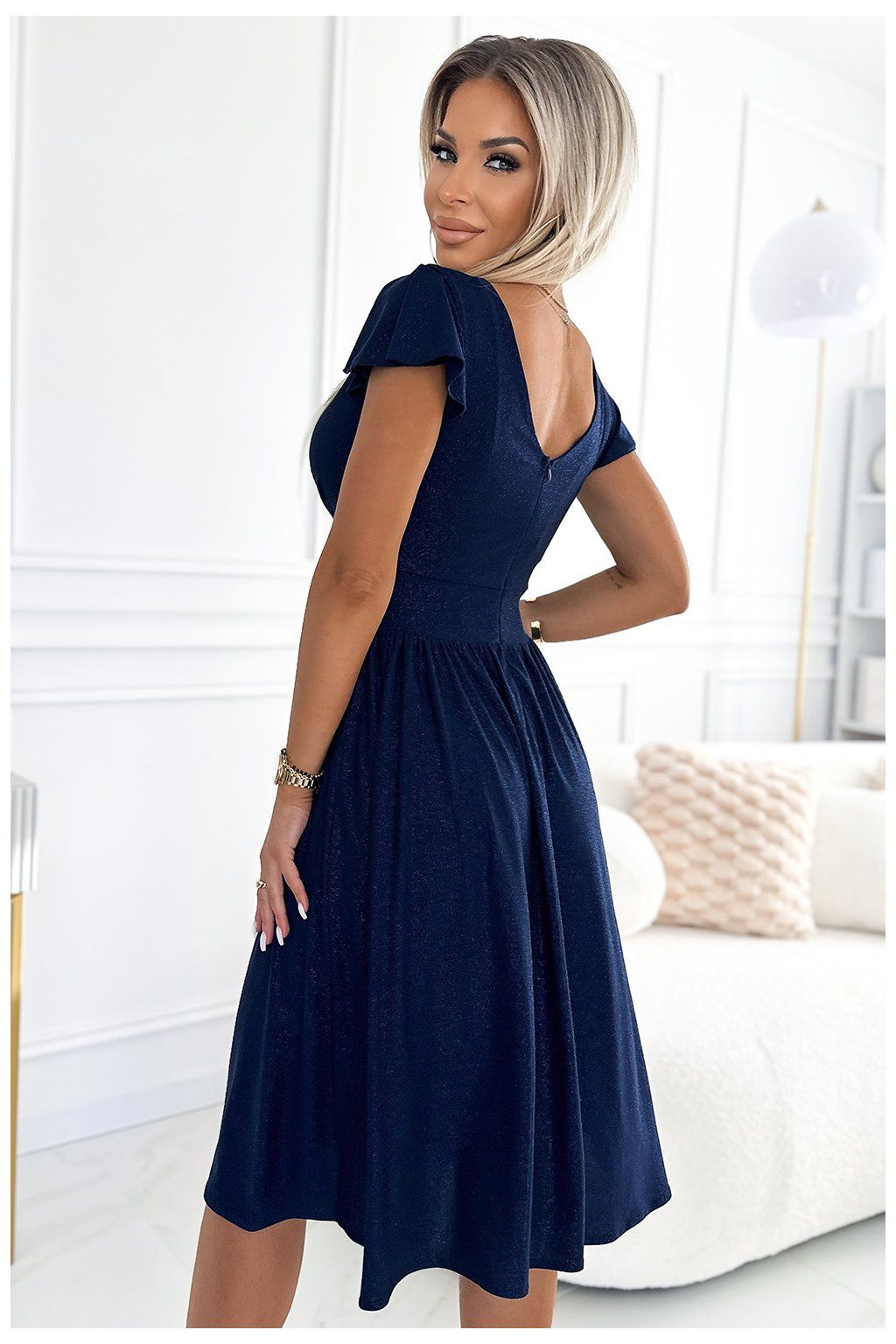 Šaty s výstřihem a krátkým rukávem - tmavě modrá se třpytkami