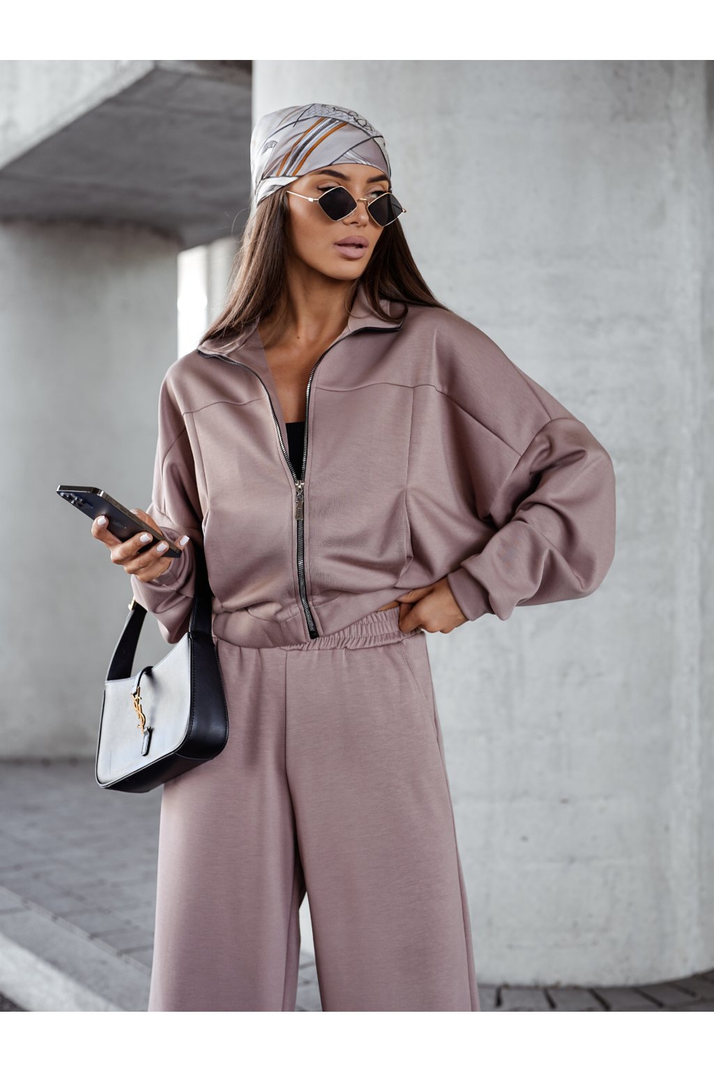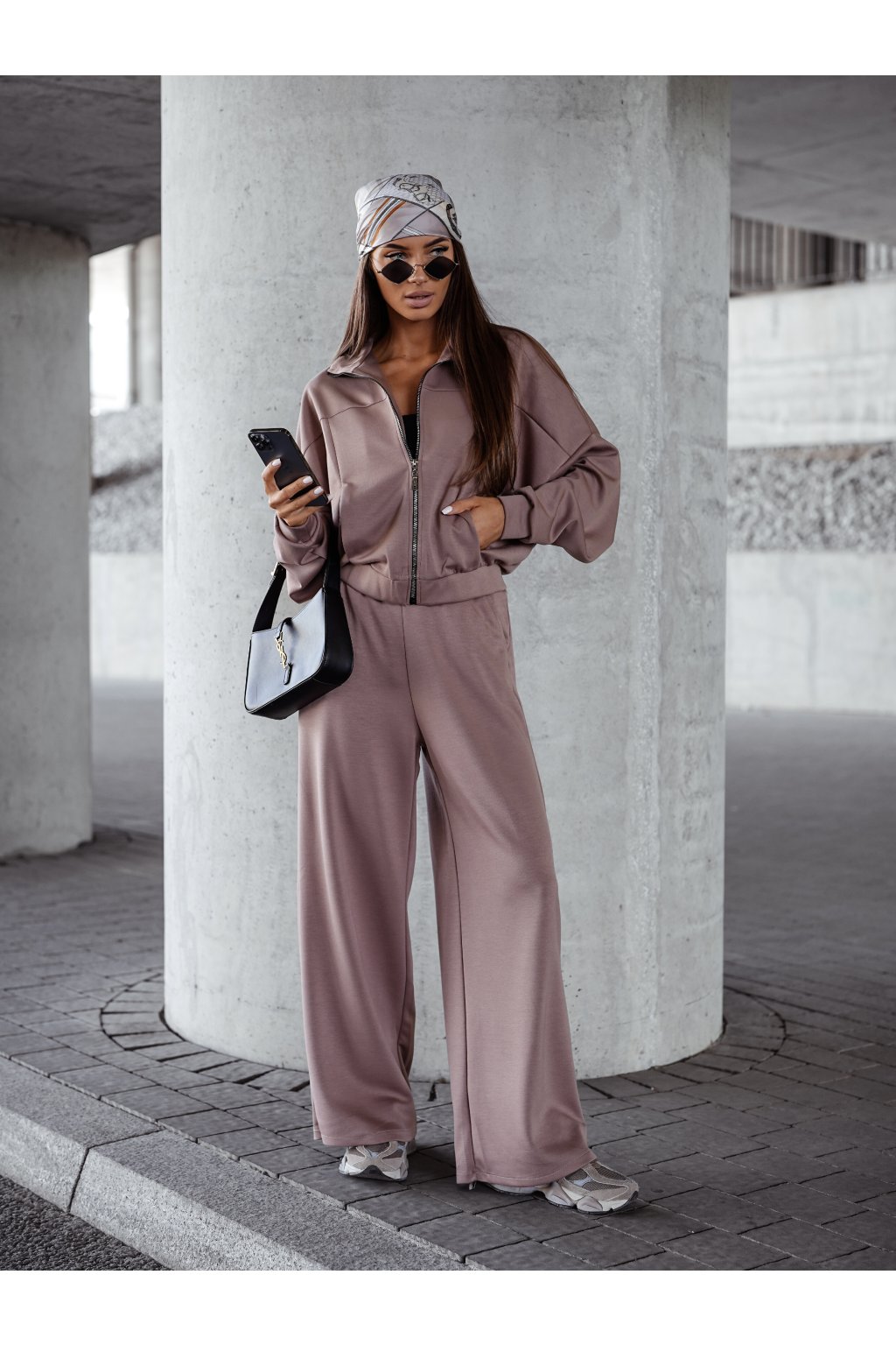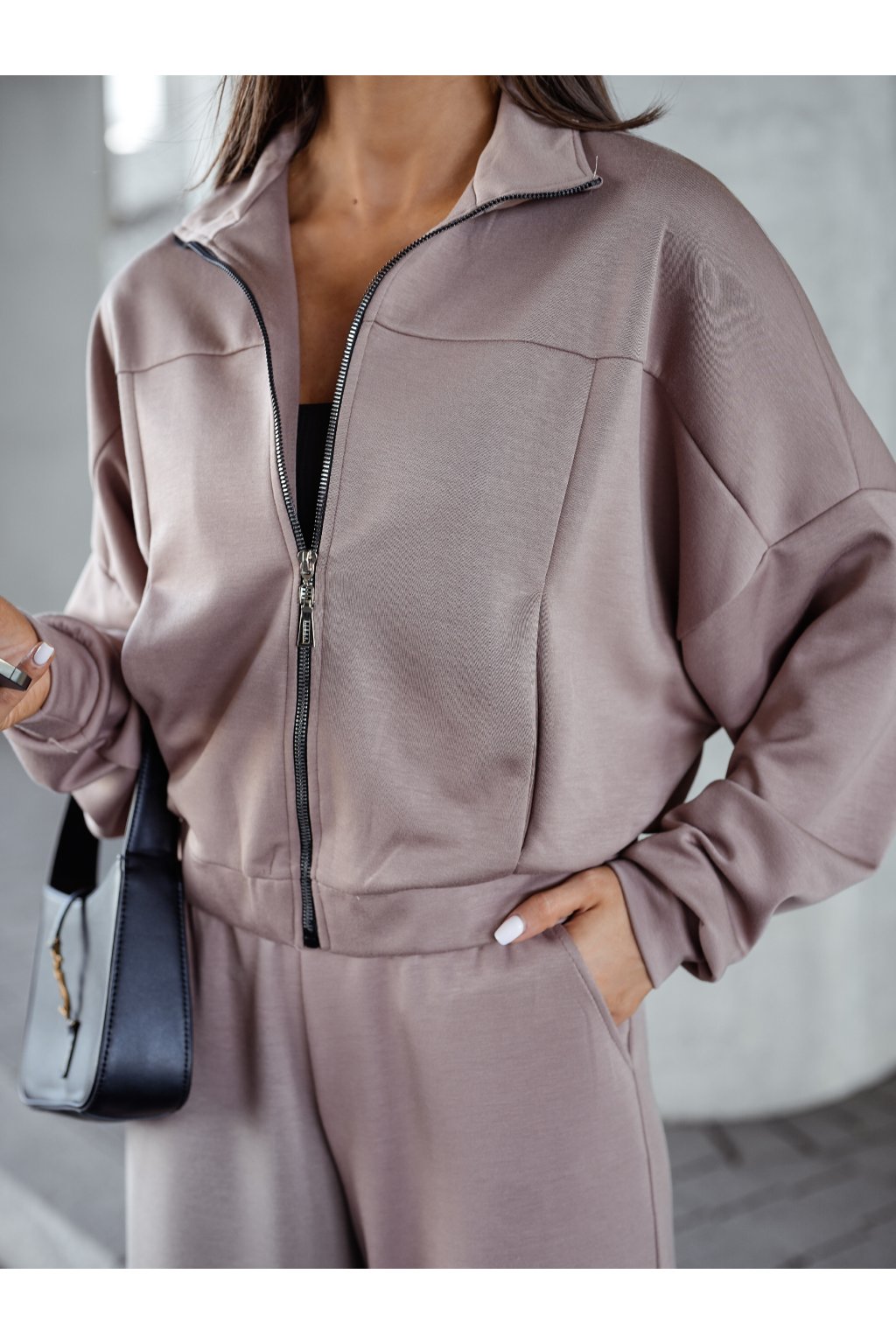Stylová cappuccino tepláková souprava s mikinou na zip je ideální pro každodenní nošení i relax.