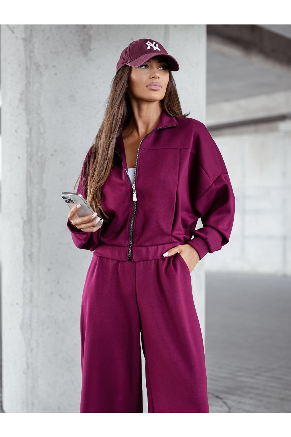 Vínová tepláková souprava s mikinou na zip je ideální volbou pro sport i domácí pohodu.