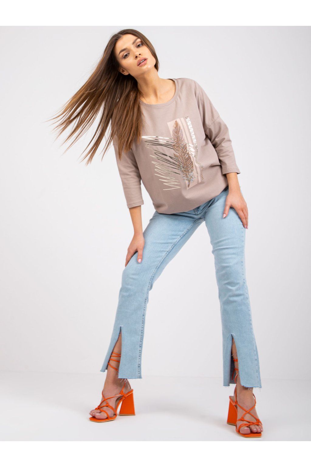 Tmavě béžová halenka s aplikací
