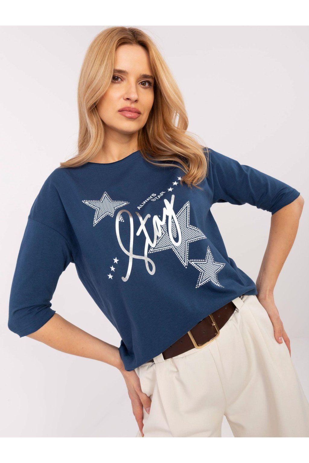 Tmavě modrá dámská halenka s nápisy