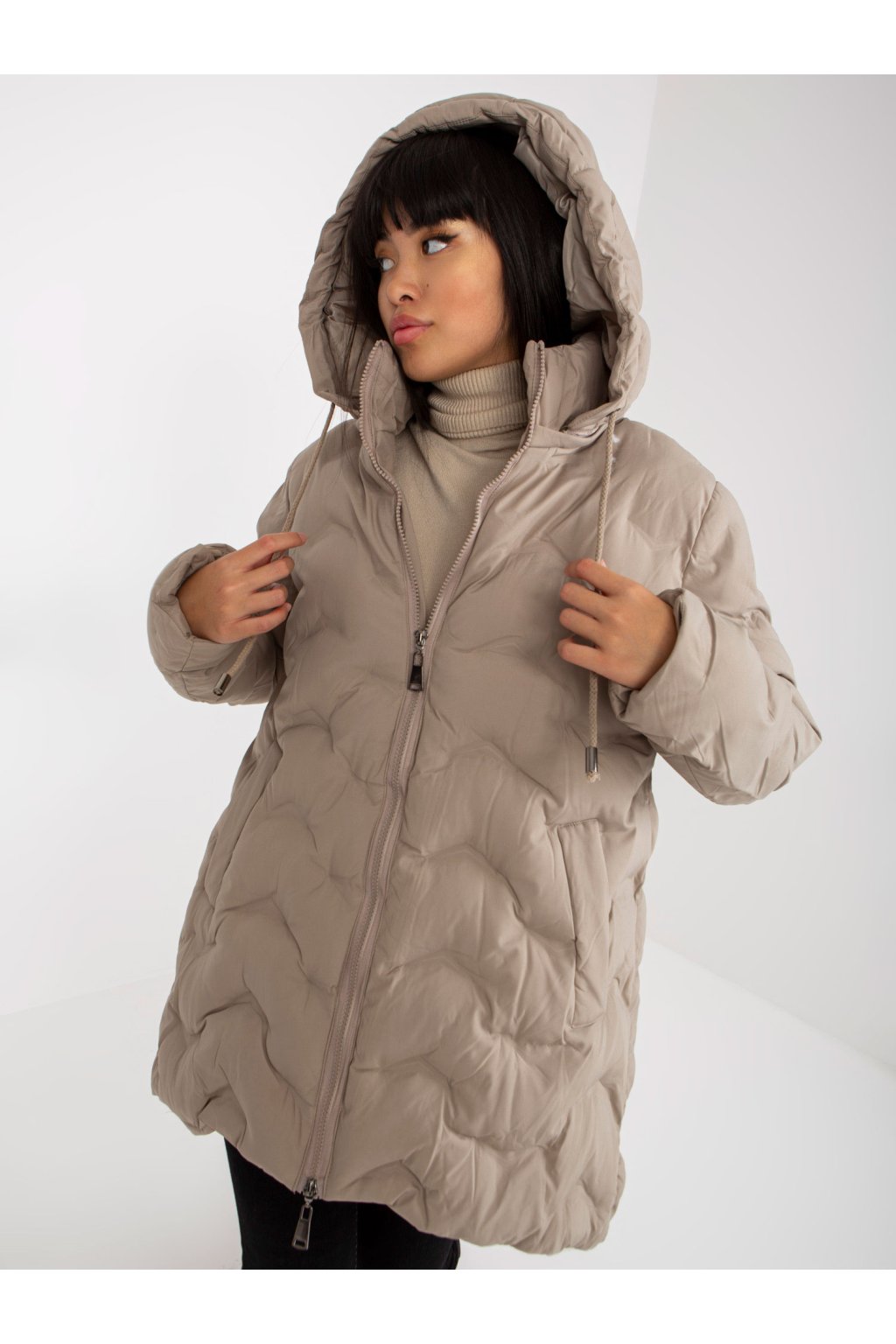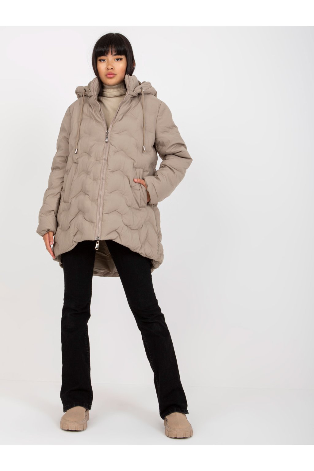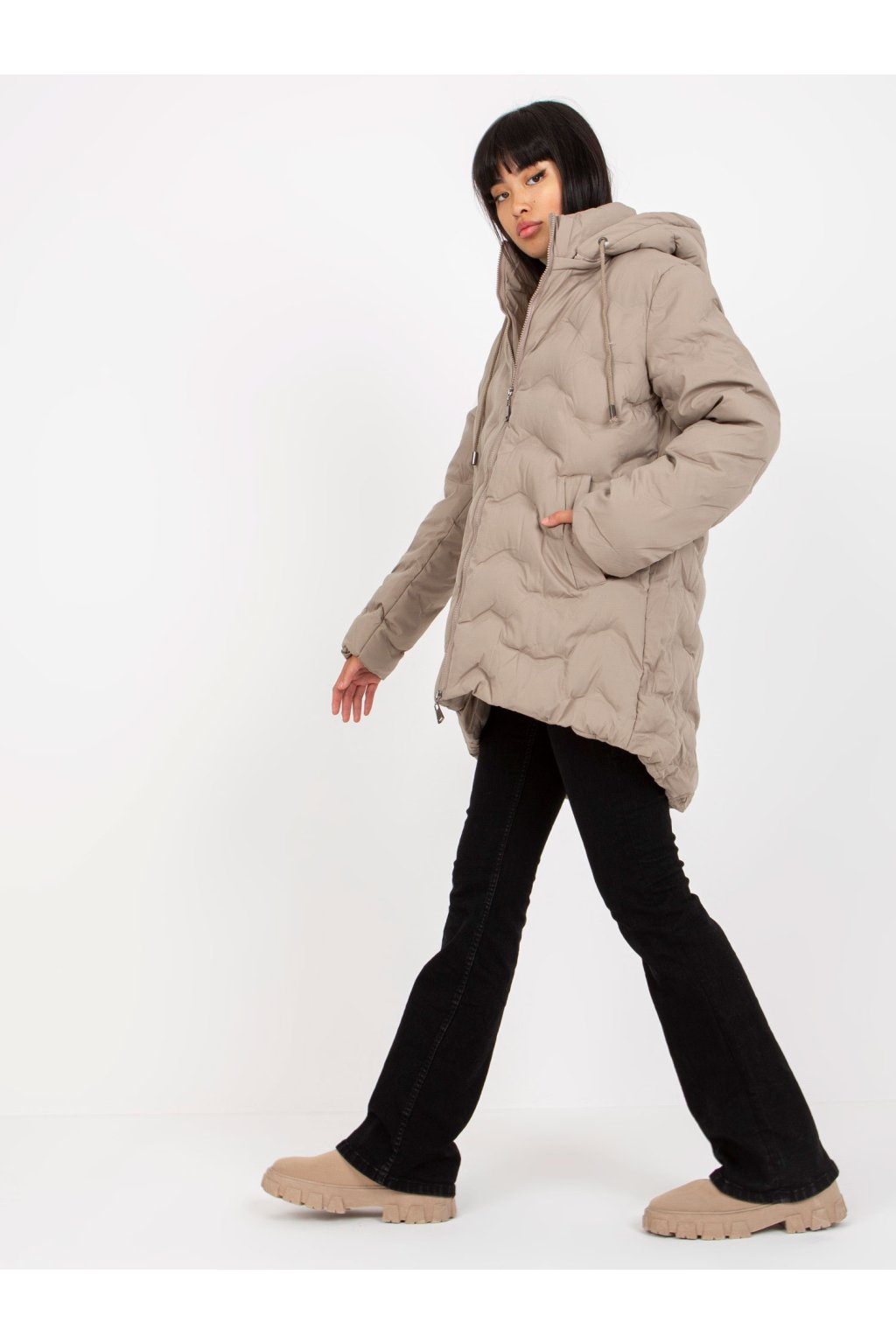 Zimní péřová bunda s kapucí béžová